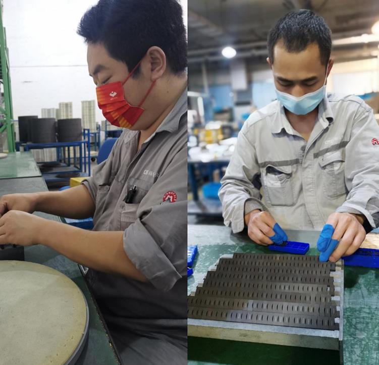 駐廠當(dāng)日,由于時(shí)間緊迫,保證品種的毛坯供應(yīng)成了當(dāng)務(wù)之急。為發(fā)揮駐廠生產(chǎn)團(tuán)隊(duì)的最大生產(chǎn)效率,盡快完成銷售催急品種的生產(chǎn),在嚴(yán)格遵守疫情防控要求的情況下,駐廠生產(chǎn)團(tuán)隊(duì)積極配合,制定生產(chǎn)組織方案,“無(wú)死角”做好生產(chǎn)保障工作,確保品種的及時(shí)交付。在人員相對(duì)緊缺的情況下,駐廠人員為盡快完成催急品種,主動(dòng)請(qǐng)纓延長(zhǎng)上班時(shí)間。閉環(huán)生產(chǎn)第一天,刀片一廠碩果累累,壓制工序超額完成11個(gè)品種的壓制;燒結(jié)工序在人員數(shù)量減半的情況下維持6臺(tái)壓力爐和1臺(tái)真空爐的正常運(yùn)行,保障壓制當(dāng)天壓坯和燒結(jié)產(chǎn)品的及時(shí)轉(zhuǎn)出。